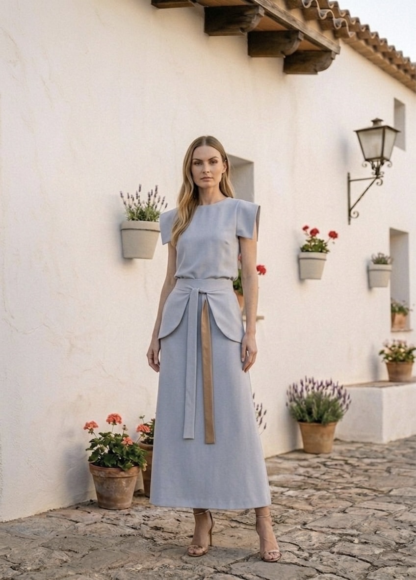 Cuando eliges un color tan versátil como el azul, el corte del vestido se convierte en un elemento clave. Los diseños bien proporcionados, femeninos y favorecedores ayudan a que el look se vea más refinado y armónico. Así, el color gana presencia sin perder elegancia y el conjunto transmite una imagen cuidada, segura y muy favorecedora.